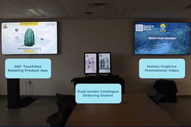 It includes a 360° touchless product display, an interactive catalogue ordering system, and dynamic motion graphic promotional screens.