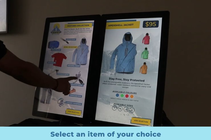 This solution enhances customer engagement, reduces physical contact, and delivers a visually immersive and modern shopping journey.